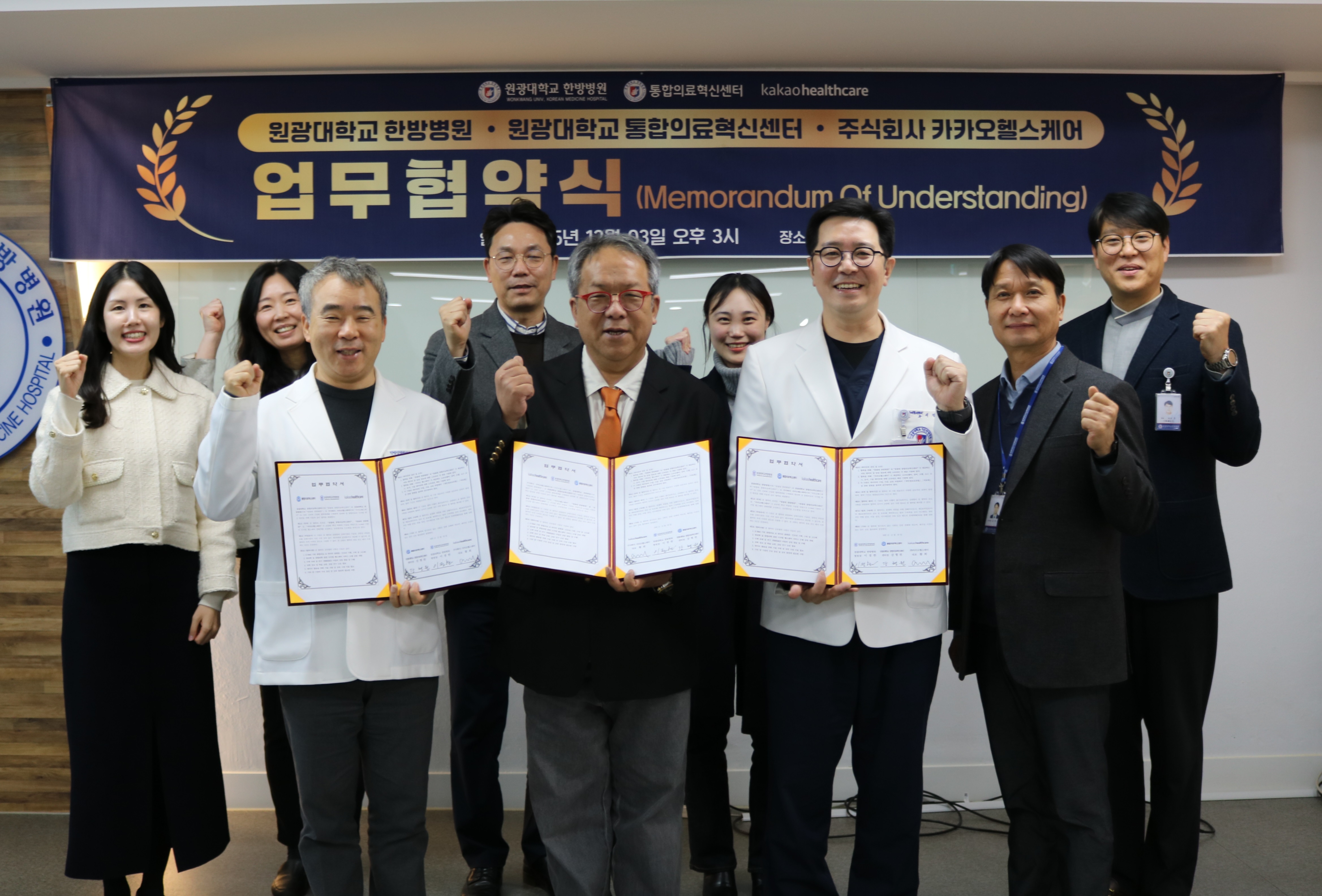 원광대학교 한방병원-원광대학교 통합의료혁신센터-카카오헬스케어, 한의학 및 통합의료 디지털 발전을 위한 다자간 업무협약 체결