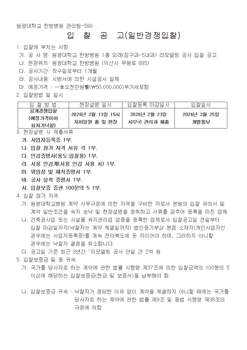 1층 리모델링 공사 침구과-5내과 공개입찰