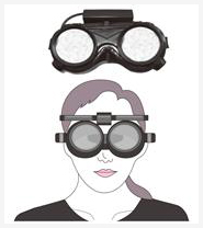 안경 착용 시 앞이 보이지 않아 환자의 시선 고정을 막는 역할을 하며 볼록렌즈가 눈의 움직임을 확대시키므로 안진 관찰을 쉽게 해준다.
